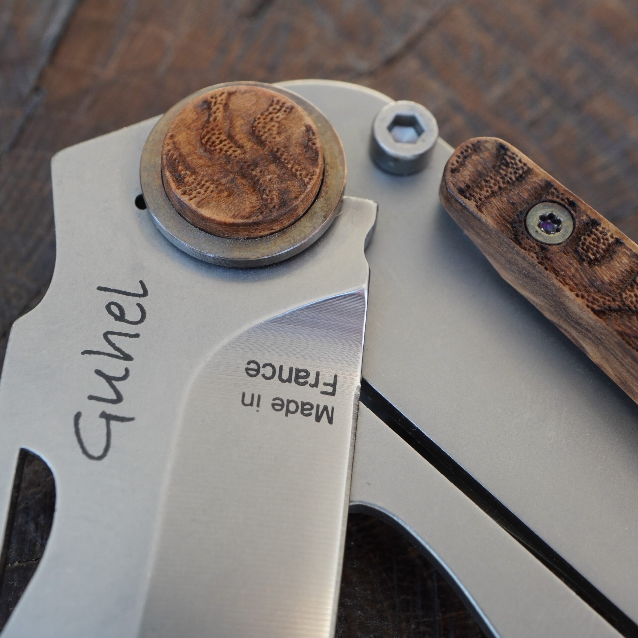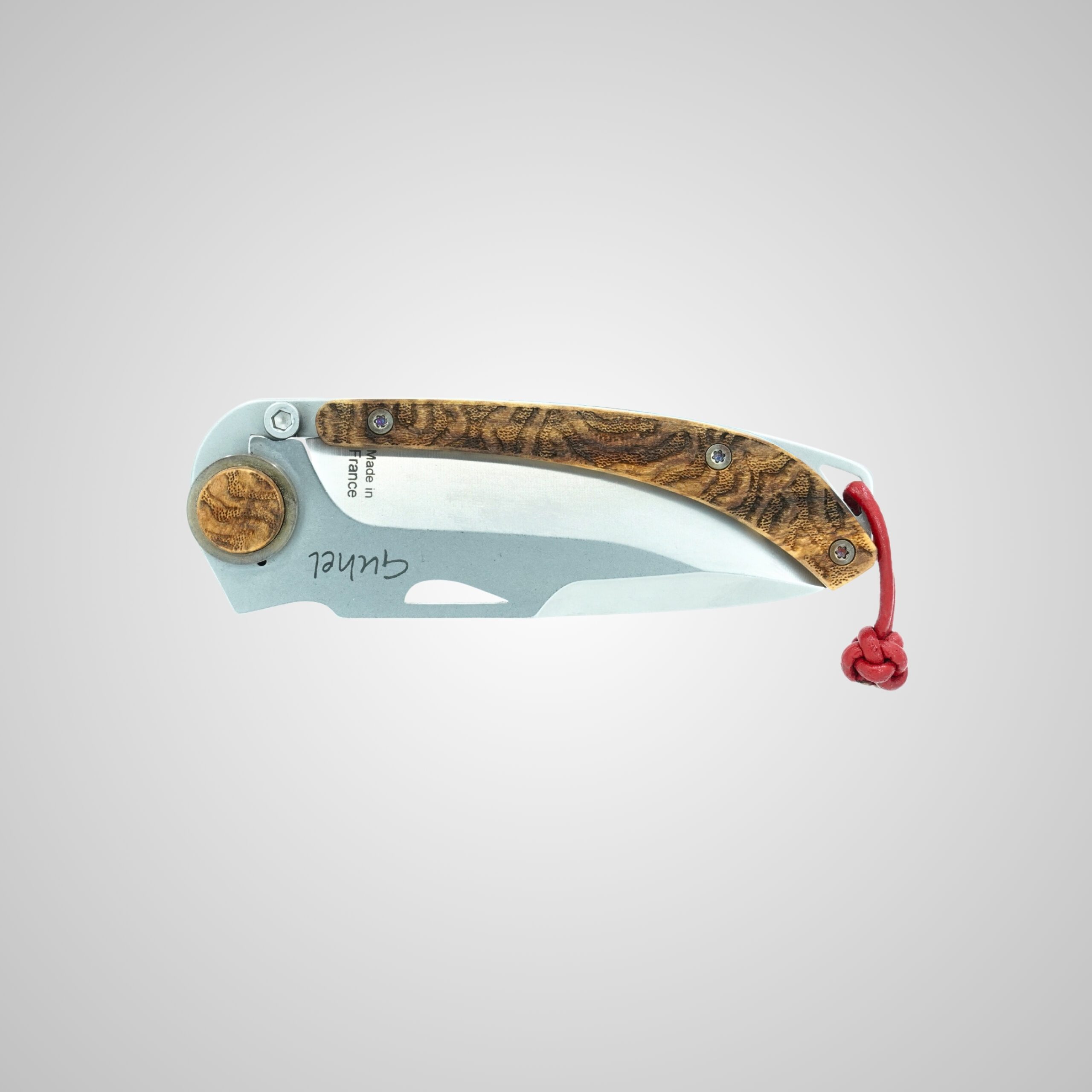 La plaquette est faite avec du bois d'olivier décorée de gravures CORAIL CERVEAU